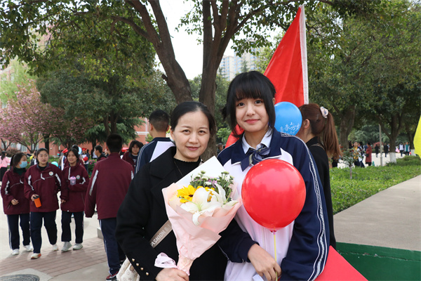 仪式的最后,同学们走上主席台,在青春誓言展板上郑重签上自己的名字,写下自己的承诺和期望。此时,有泪花,有鲜花,有拥抱,有祝福。在人间最好的四月天,同学们与父母合影,与老师合影,笑意盈盈,祝福声声,整个校园,温情洋溢。