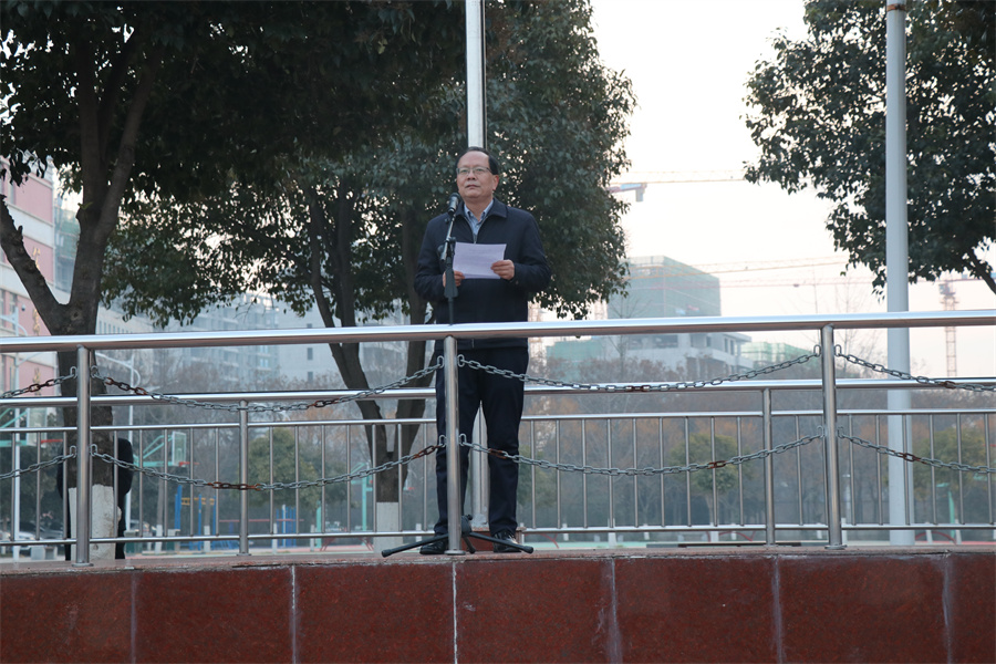 韩党卫书记在致辞中肯定了上学期全体师生做出的努力和取得的成绩,并对全体师生致以诚挚的问候和美好的祝福。在即将到来的新学期,希望老师们将立德立心与为学、为事、为人有机统一,适应教育教学改革要求,研究学生成长规律,将个人成长、学生成才与学校发展紧密相连,做职业追求的奋斗者,做学生成长的引路人;希望同学们珍惜时间、奋力拼搏,追赶超越、成就自我,不负青春、不负韶华,在新的学期取得更大的进步,成为最好的自己。