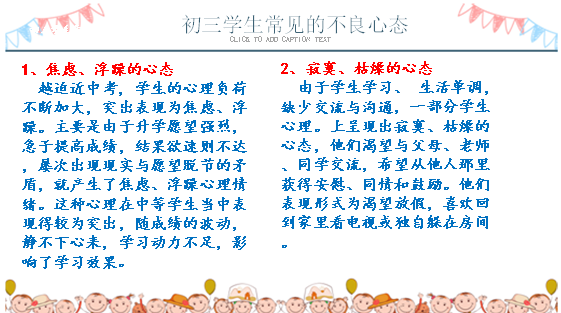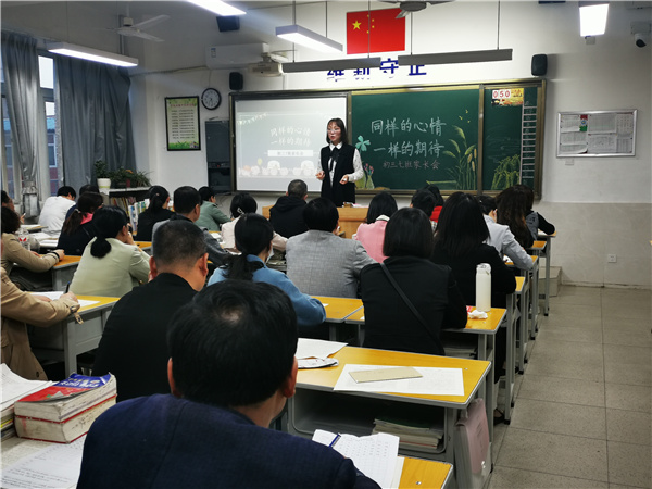 本次家长会的主题为“同样的心情 一样的期待”。班主任们向家长们汇报了本学期工作及练考成绩分析,介绍了体育和理化生实验考试相关情况,希望家长们配合学校,做好学生的饮食安排等服务工作。班主任老师指出,临近中考,学生的心理压力较大,容易产生焦虑、浮躁等不良心态,希望家长们能多关注孩子的心理状态,为孩子减轻压力,轻装上阵。