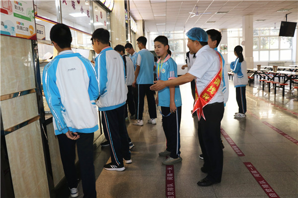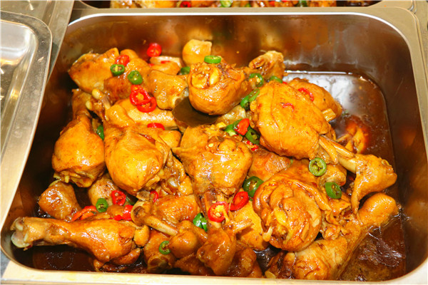 在食堂的窗口可以看到,雪白的米饭上面盖着金黄的炸鸡块,再配上碧绿的青菜,这是美味的炸鸡饭。装在碗里精致可口的狮子头、牙签肉……这是品种多样的湖南蒸菜。类似于网红汇通面的“关中印象”,臊子种类多样,面条筋道。牛肉面汤底浓郁,每天用新鲜的牛肉熬制。还有女生最爱的锡纸土豆粉,有肉有菜,再配上一碗米饭,实惠又好吃。“我喜欢鸡排饭,好吃,量足,价钱也不贵!”初三5班的席文杰同学说。