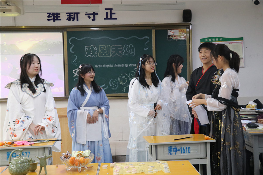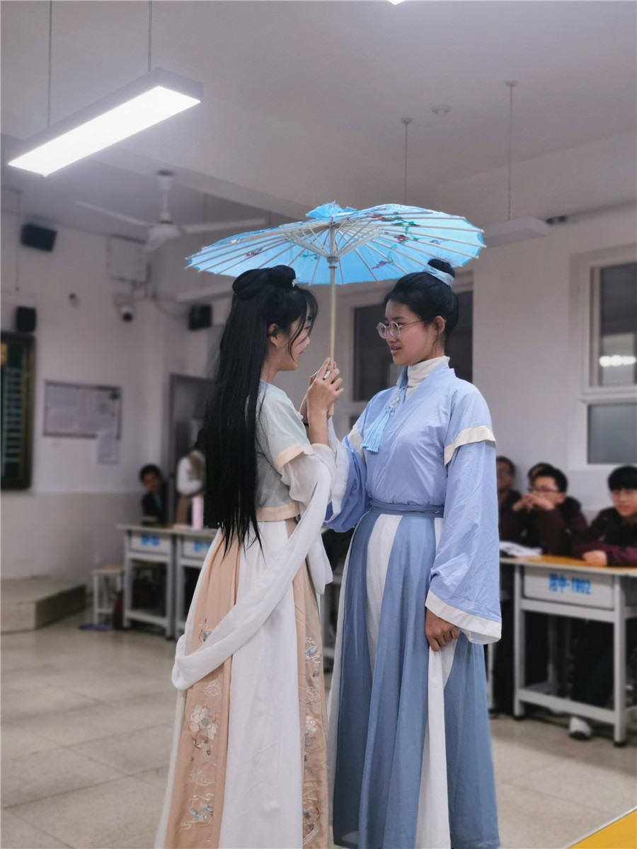 此次展演的剧目题材丰富,古今中外并举,有展现历史事件的《文姬归汉》、《文成公主入藏》等,有文学经典《红楼梦》、《三国演义》等的片段,还有外国经典莎士比亚剧作《仲夏夜之梦》等以及热门电影《驴得水》、《西虹市首富》等的桥段。舞台上,同学们塑造了一个个鲜活的人物形象,展现了生动的戏剧场景。杀机四伏、计谋百出的“鸿门宴”,显现末世百态的“茶馆”,敢于反抗暴秦的“陈胜”、“吴广”,处处留心、时时在意的“林妹妹”,忧国忧民的“白乐天”,虚伪冷酷的“周朴园”……现场气氛热烈、掌声不断。