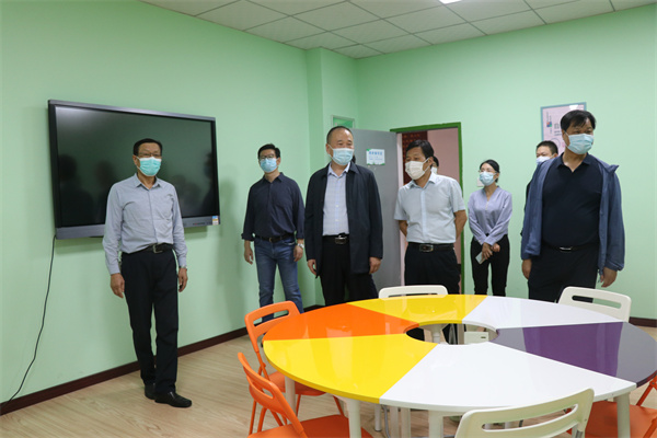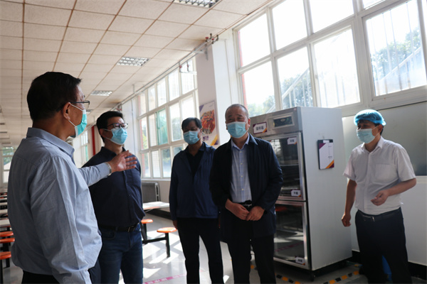 康林昌一行实地察看了我校高中部、初中部、心理咨询室、餐厅等地,并查阅了相关资料。我校校长王常劳、书记韩党卫等领导汇报了学校基本情况、师德师风建设、推进“双减”政策、“五项管理”落实情况、疫情防控工作、校园安全工作、高考综合改革等方面的工作。