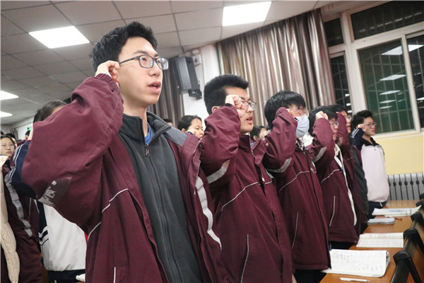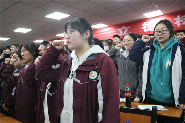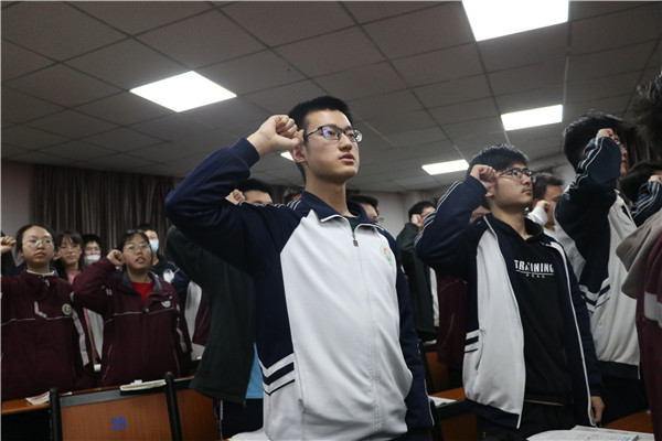 在百天冲刺之际,每一位同学都豪情万丈,激情澎湃。在领誓人周子聪同学的带领下,全体同学声音嘹亮,内心坚定,庄严宣誓,许下承诺。