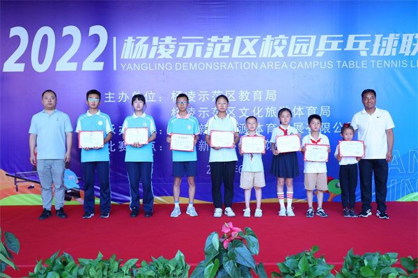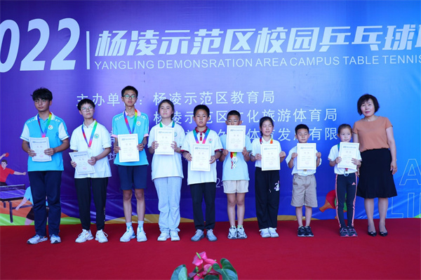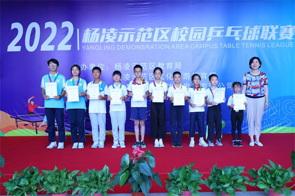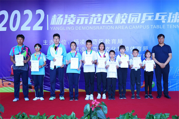 在日前结束的杨凌示范区2022年校园乒乓球联赛中,我校乒乓球代表队获得4项冠军、2项亚军、2项季军的优异成绩。我校教师马旭、郑志敏获“优秀教练员”称号,我校获“优秀组织奖”。